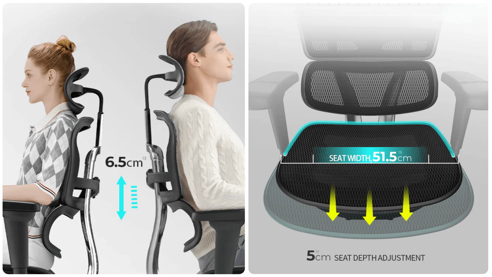 Η έδρα της καρέκλας ρυθμίζεται σε βάθος κατά 50mm, επιτρέποντάς σας να προσαρμόσετε με ακρίβεια τη θέση σας ανάλογα με το ύψος και το μήκος των ποδιών σας. Αυτή η εξατομίκευση εξασφαλίζει σωστή στήριξη στους μηρούς, προάγει την καλή κυκλοφορία του αίματος και βοηθά στη διατήρηση εργονομικής στάσης κατά τη διάρκεια πολύωρης καθιστικής εργασίας.